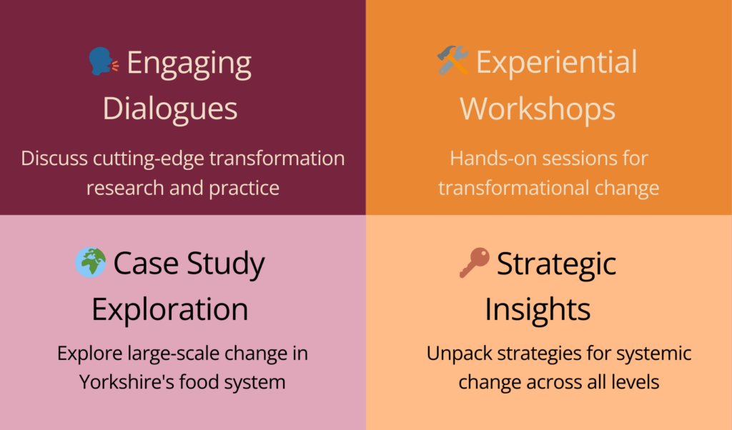 We are excited to announce the first Transformations Community X (TCX) event, from June 25-27, 2025. Hosted by the University of York, Organising for Transformation focuses on research and practice supported by experiential workshops. Themes include leadership, governance evaluation, learning, and insights from an applied regional case study of the transdisciplinary FixOurFood program. The TCX-YORK Conference will serve as a dynamic lead-up to the TC/ESG conference in South Africa, offering interactive sessions and networking opportunities.